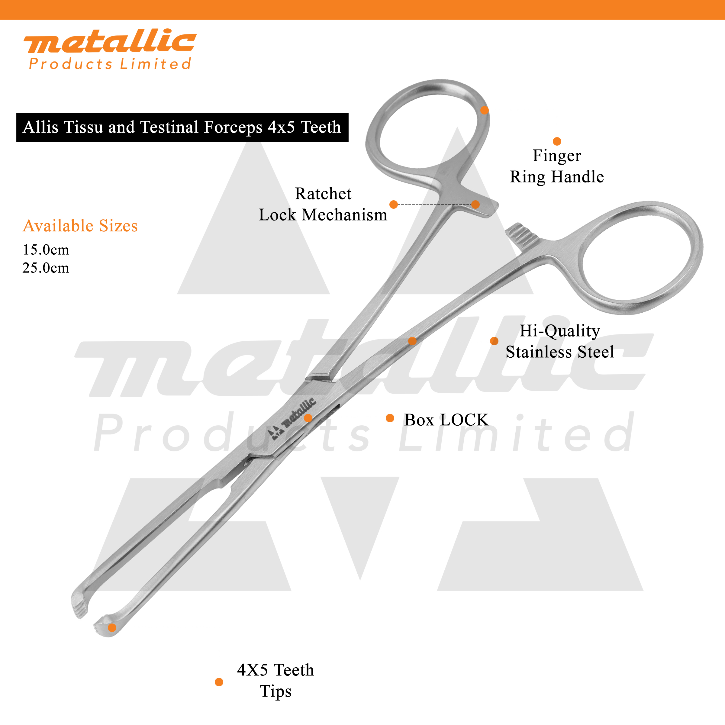 Allis Tissue Forceps 4x5T 15cm – Precision Stainless Steel Surgical Instrument