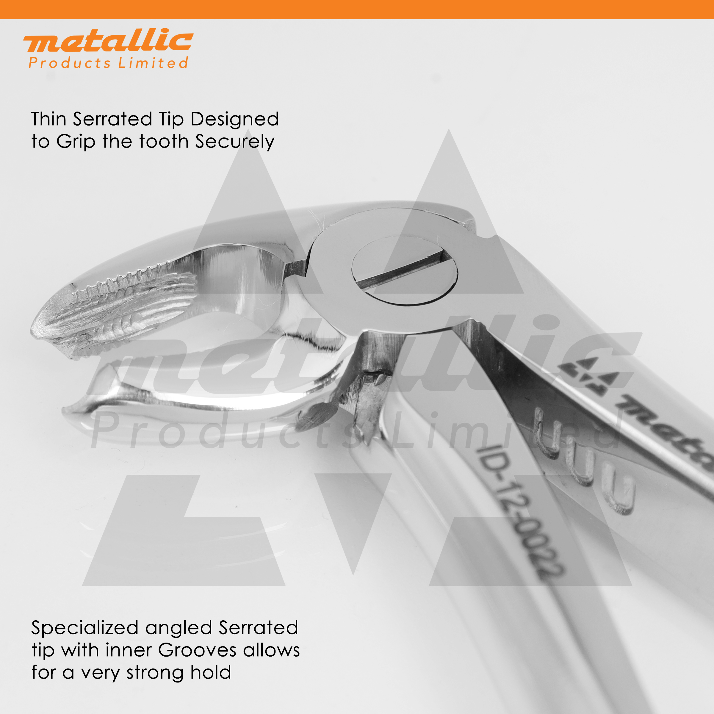 Dental Extracting Forceps Fig. 22 – gold-plated stainless-steel tool for lower wisdom tooth extractions. Precision-crafted by Metallic Products Limited.
