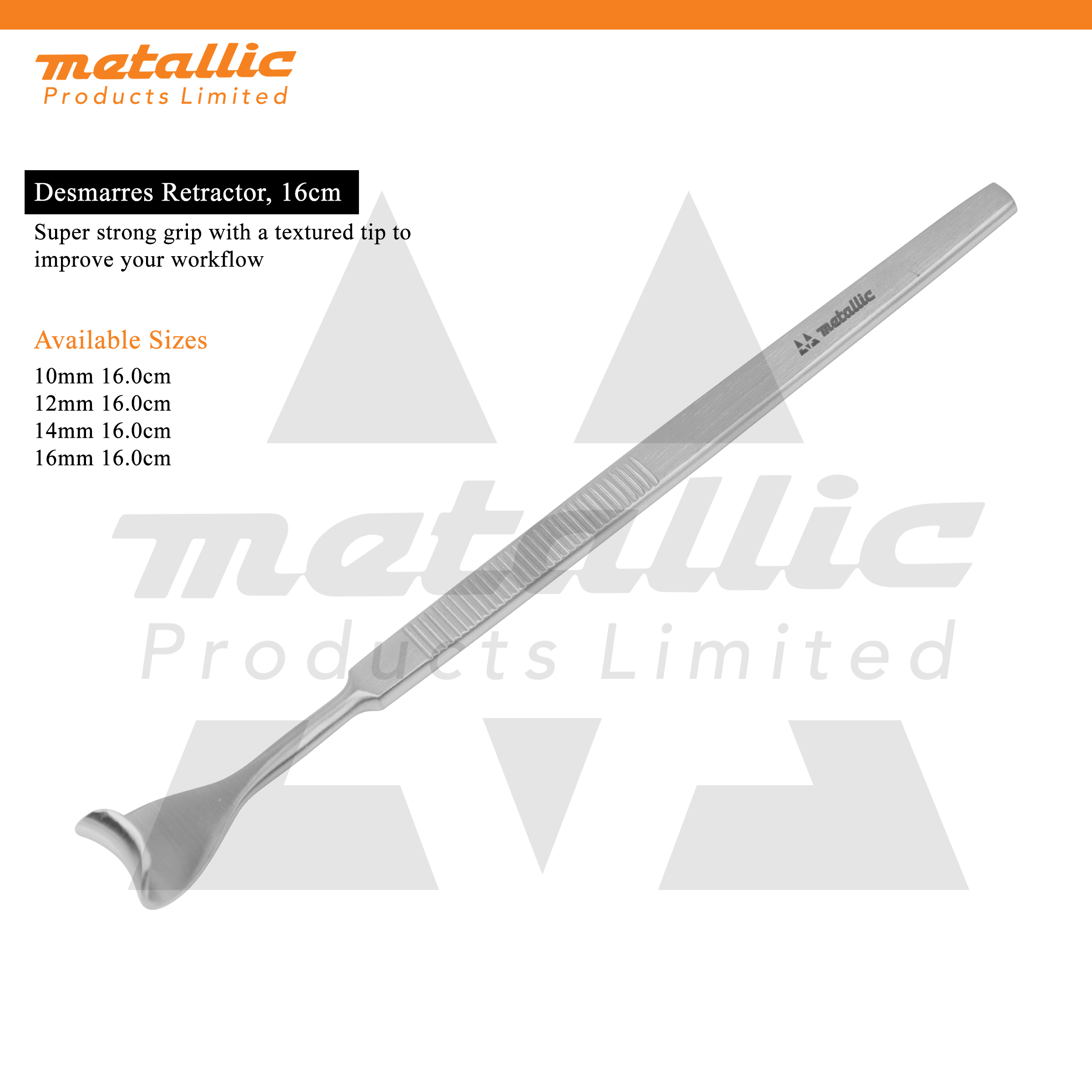 The Desmarres Retractor 14mm is a specialized surgical instrument designed for gentle yet effective tissue retraction. Its smooth, curved design makes it an essential tool in:
