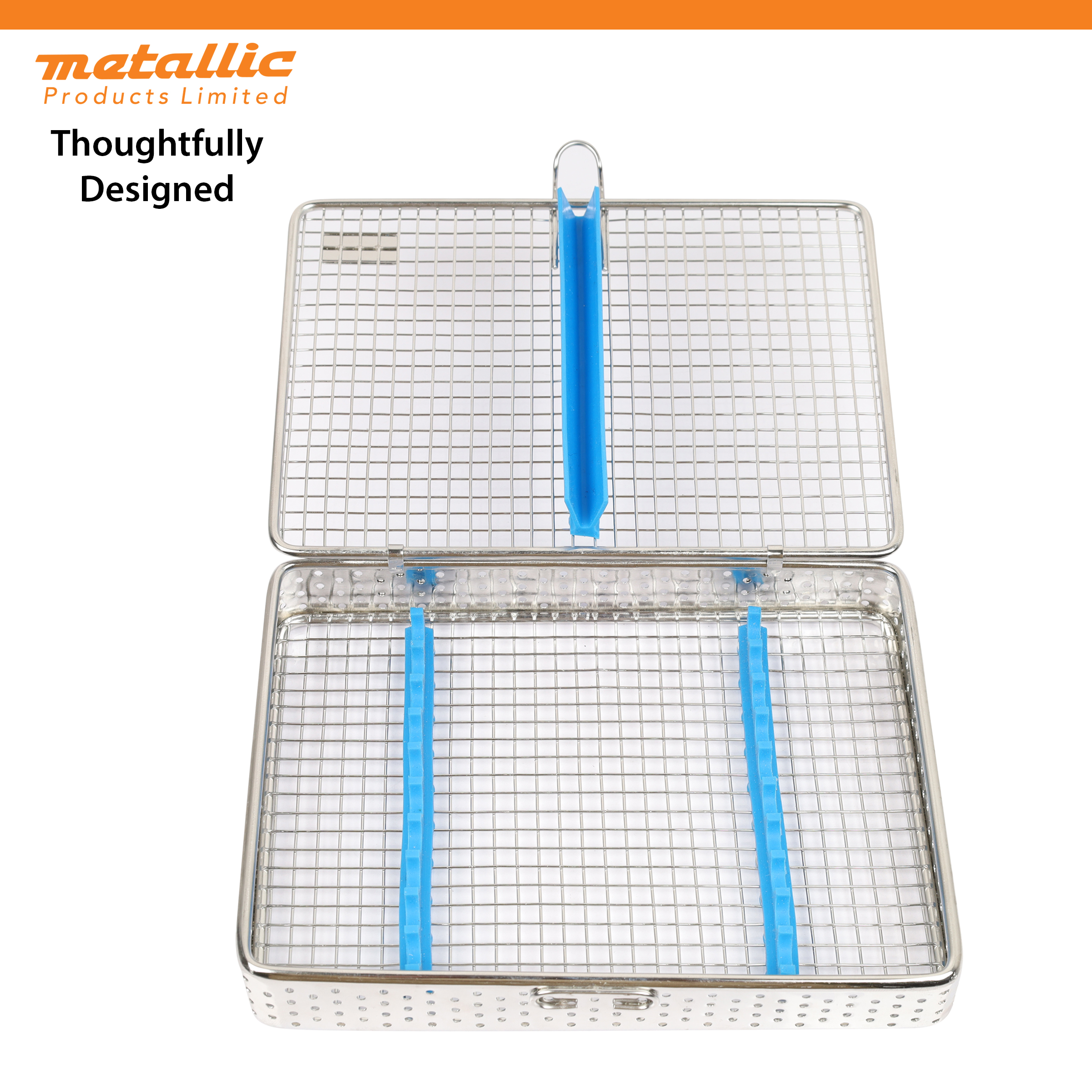 The 10pcs High-Quality Instruments Mesh Cassette with Blue Silicone is designed for durability, hygiene, and efficiency. Built with premium stainless steel, it resists rust and corrosion while ensuring reliable sterilization and secure instrument storage.