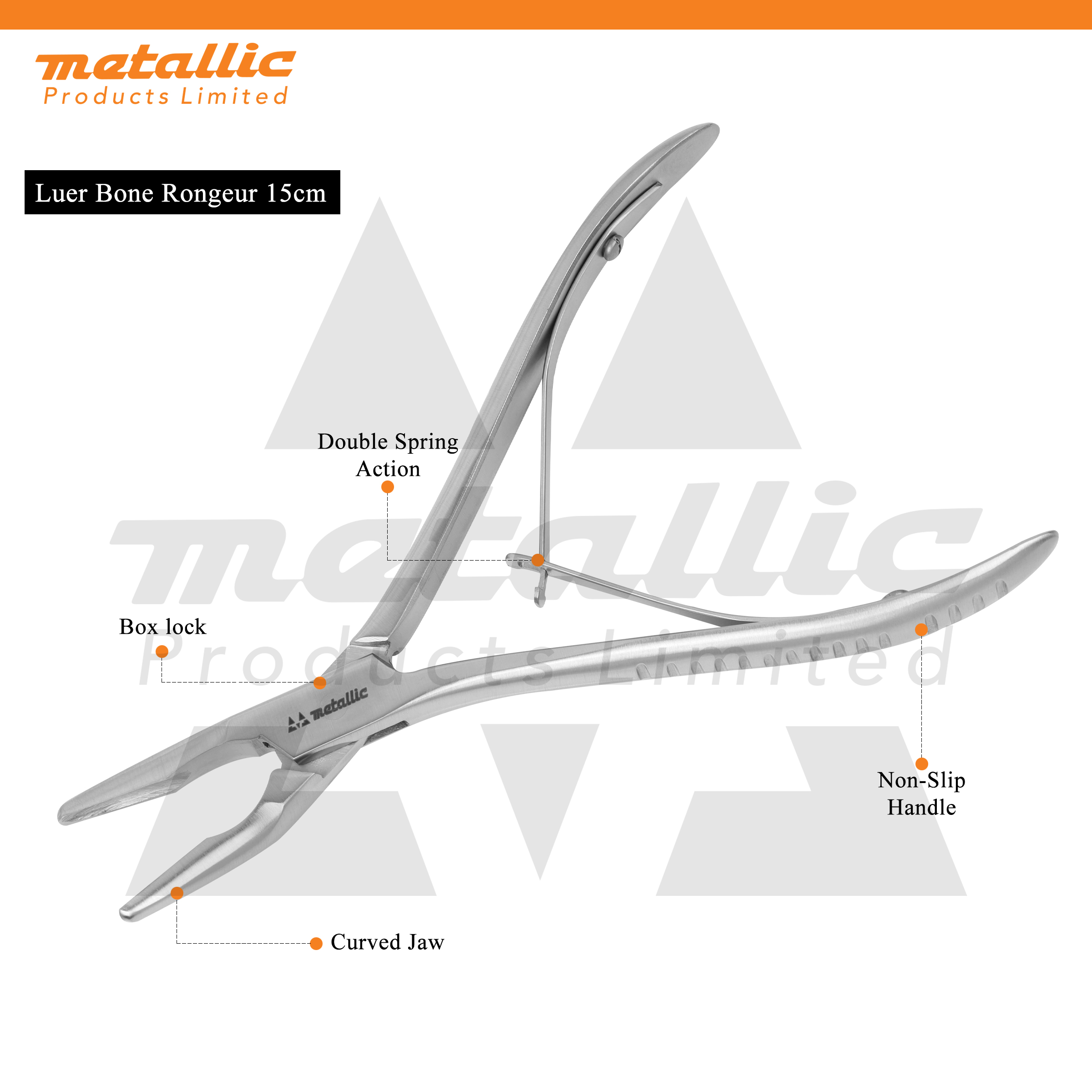 Mechanism: Double-action design – maximizes cutting force while reducing surgeon effort