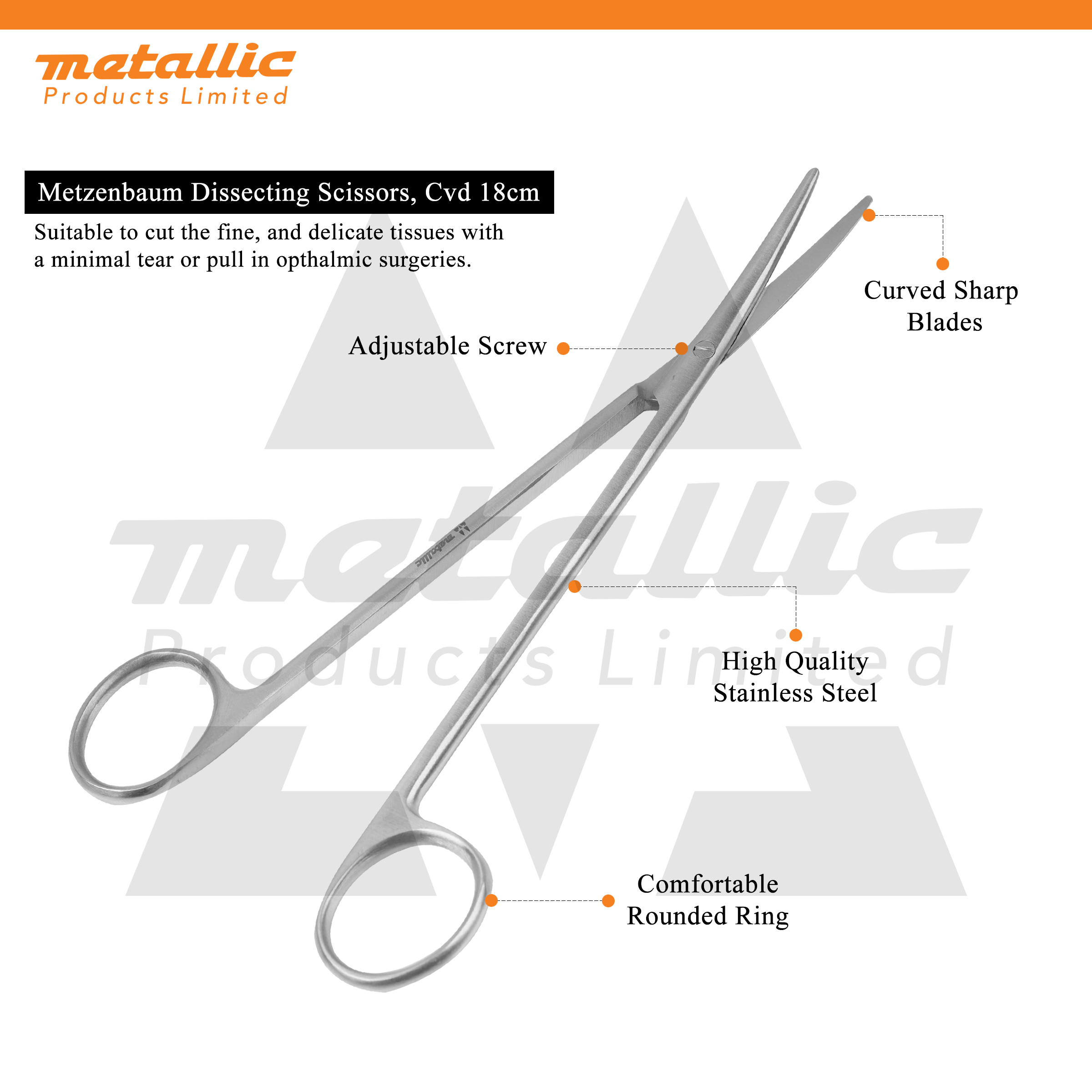 Product Name: Metzenbaum Scissors 18cm CVD