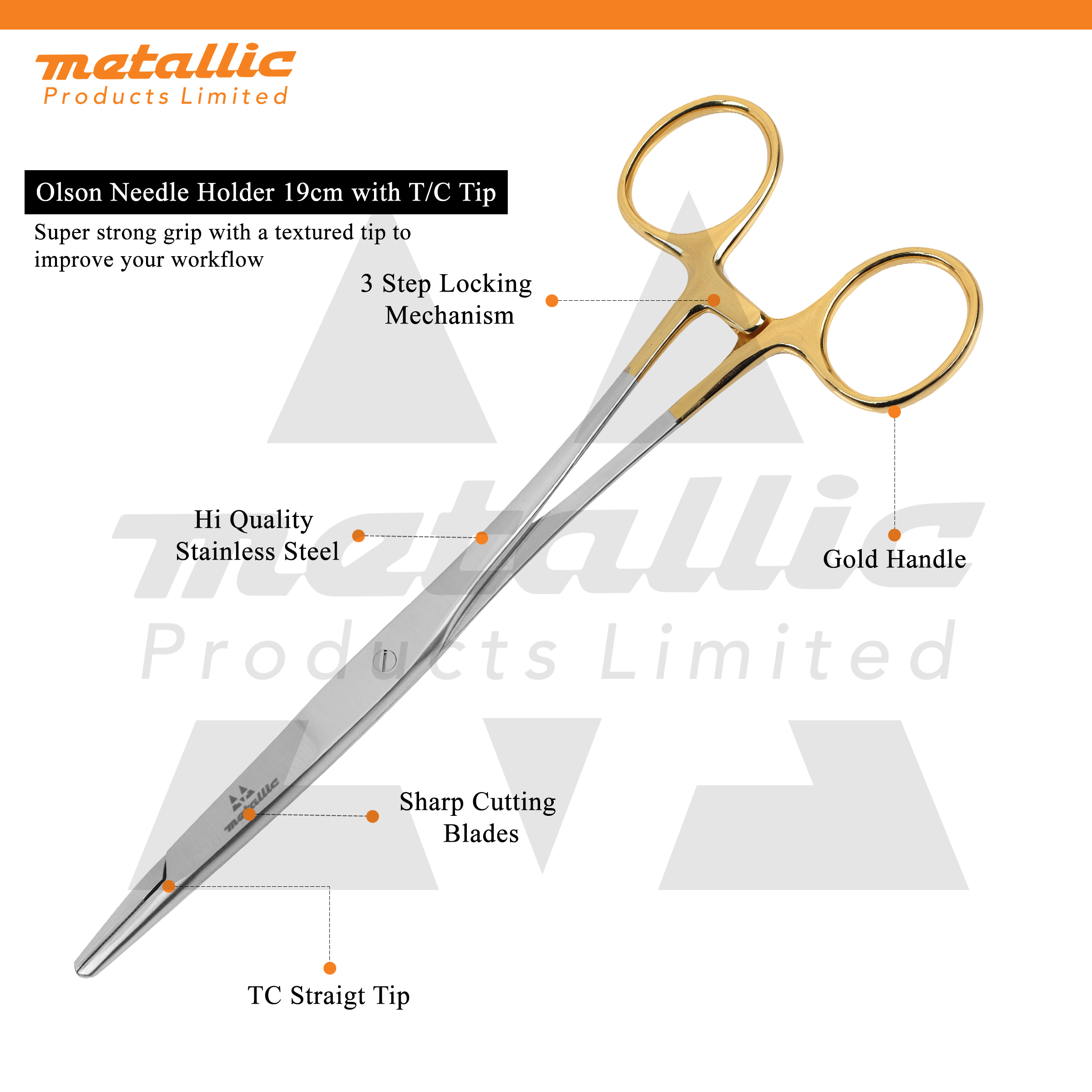 Olson Needle Holder 19cm with T/C tip combines needle holding and cutting in one tool—ideal for precise suturing.