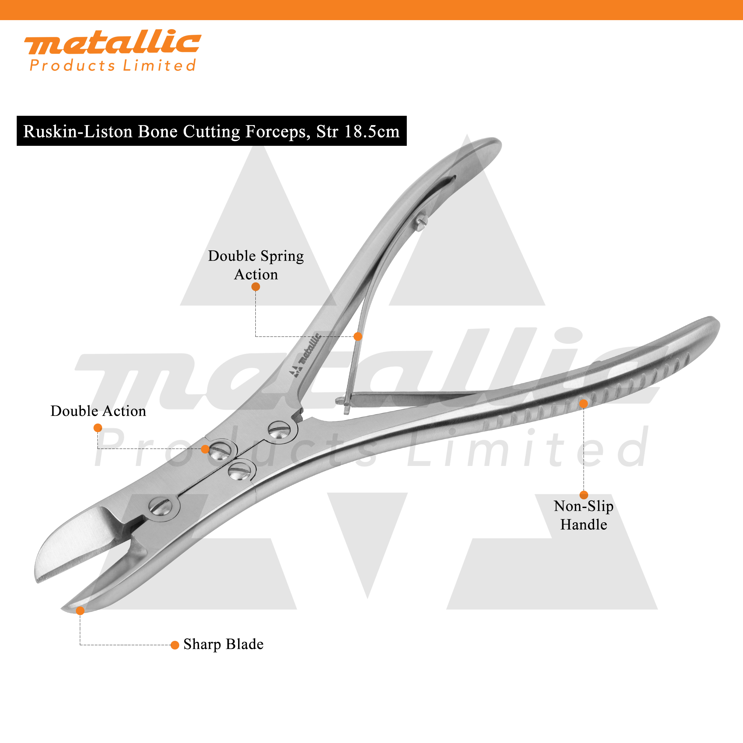 Mechanism: Double-action design – enhances cutting force while reducing surgeon effort