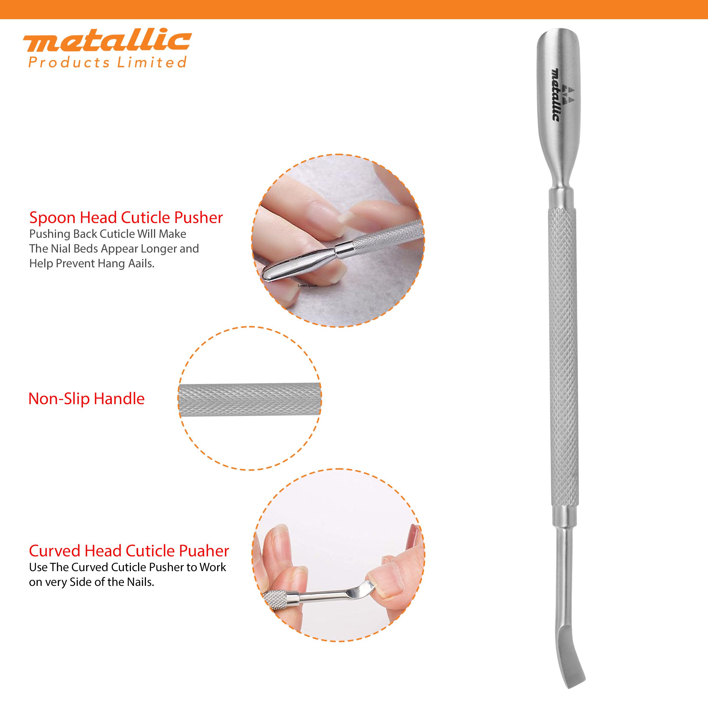 Dual-function cuticle pushers with built-in knife for effective cuticle care and gentle removal of dead skin or product buildup.